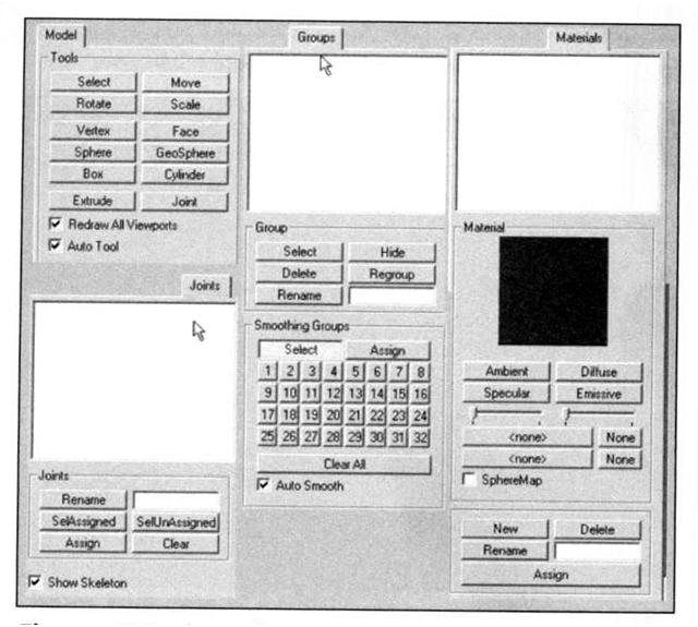 if you only have three views in your window when you first run Milkshape, choose Window, Viewports, 4 Window, and you should get something close to what you see in Figure 1.