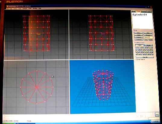 Now choose the Groups tab again, make sure your cylinder's group is selected in the list. If your can is not already highlighted in red, click Select. You will see your can highlighted in red in the three wire-frame views.