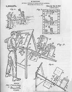 Left, Max Fleischer's patent drawing, Oct 9, 1917